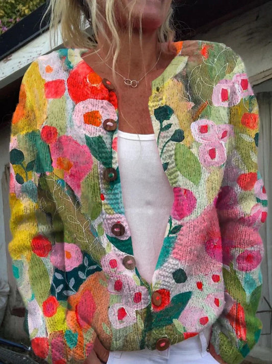 3D Digital Printed Cardigan Knitted Jacket For Women