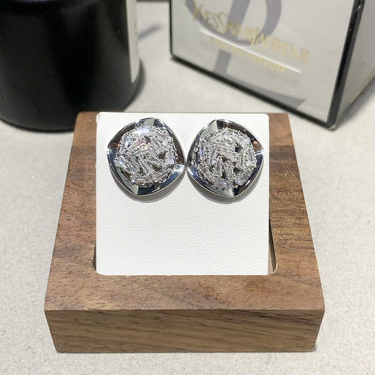 Retro-style Silver Stud Earrings With A Niche Design And Zircon Accents