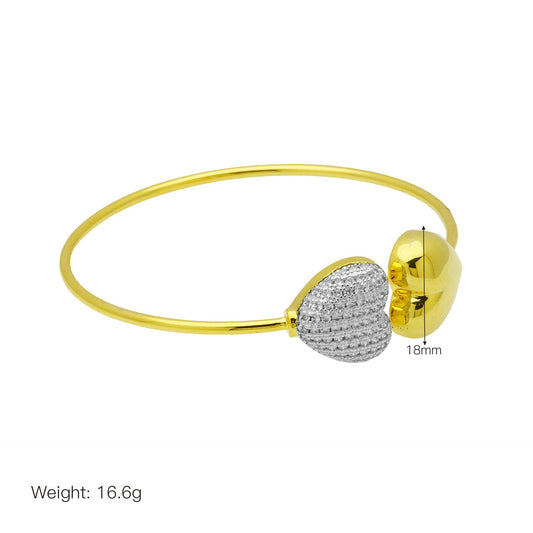 Stone Peach Heart Copper Plating 18K Gold Hollow Bracelet