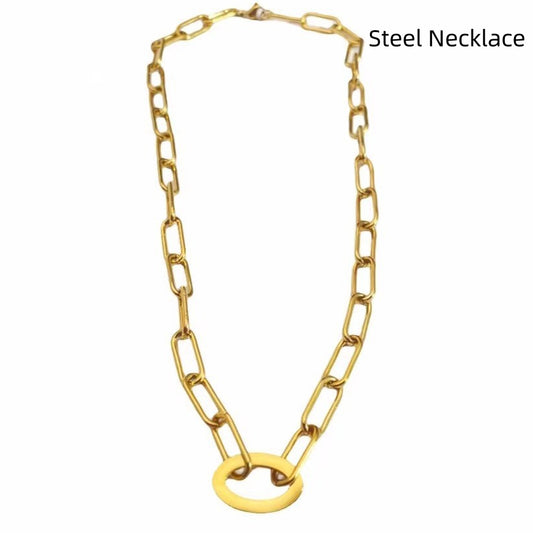 26 English Letters Flip Buckle Necklace Men's Ornament Gold Stainless Steel