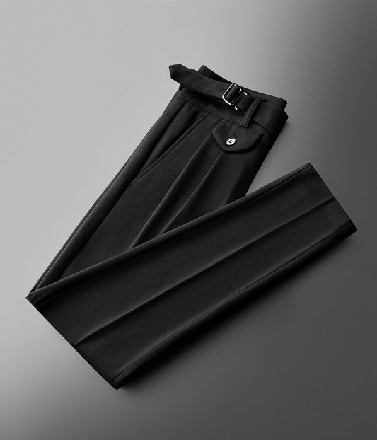 Men's High Waist Double Pleated Vertical Retro Trousers