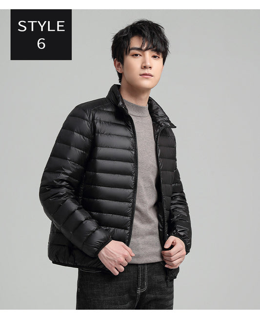 Plus-size Men's Solid Color Simple Stand-up Collar Slim-fit Warm Cotton Coat