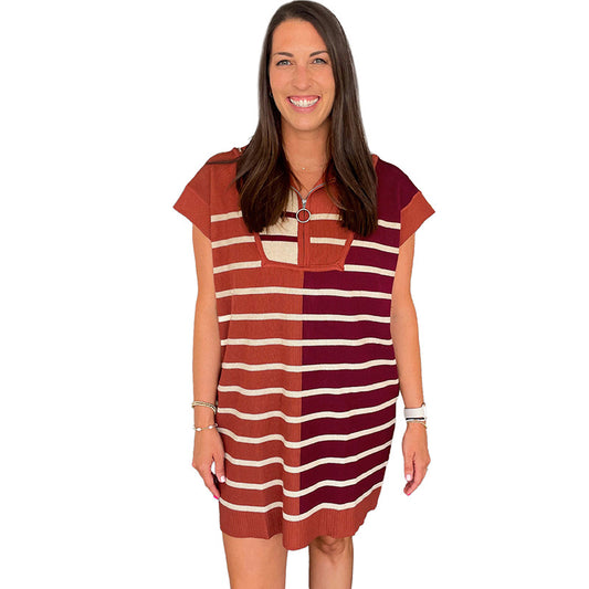 Color Matching Hollow Out Half Sleeve Loose Striped Top