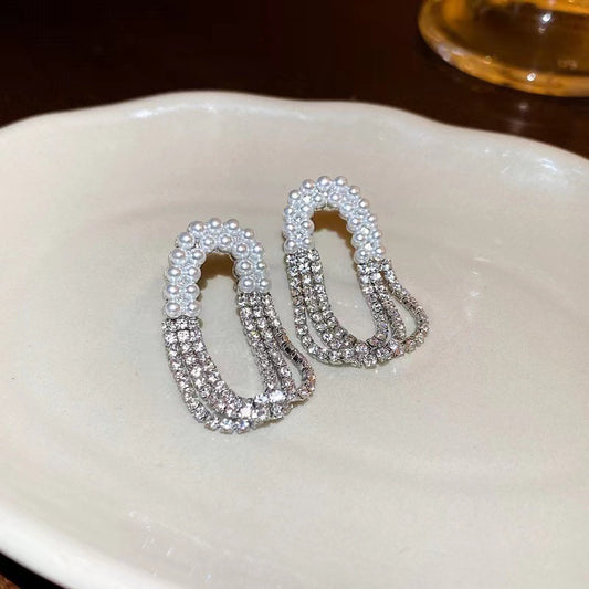 Zircon Multi-layer Tassel Pearl Tassel Earrings