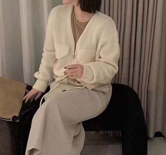 Zipper Lazy Casual Loose Knitted Cardigan Fashionable Jacket Sweater