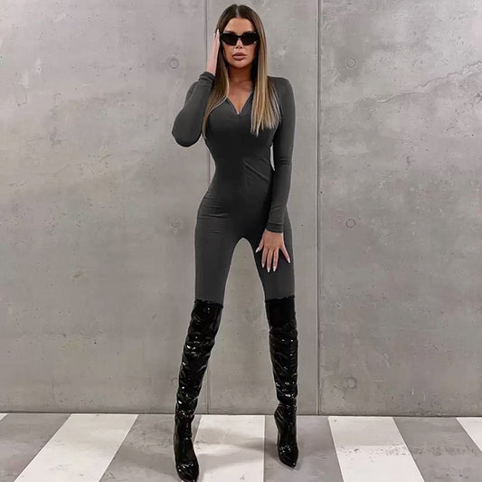 Zipper High Waist Hip Lift Slim-fit Long-sleeved Jumpsuit