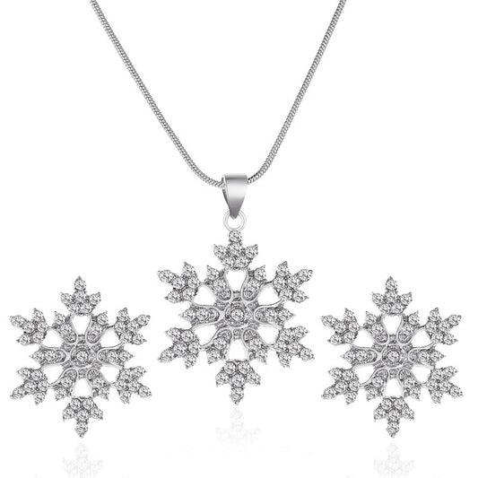 3pcs Snowflake Necklace Set With Rhinestones Earrings And Clavicle Chain Pendant Necklace Valentine's Day Gift