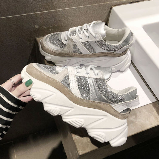 Platform Shoes Shiny Rhinestones Old Shoes Trendy Shoes Inner Height Increase Shoes