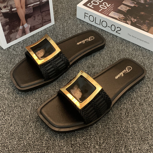 Women's Solid Color Square Toe Triangle Heel Thick High Heel Slippers