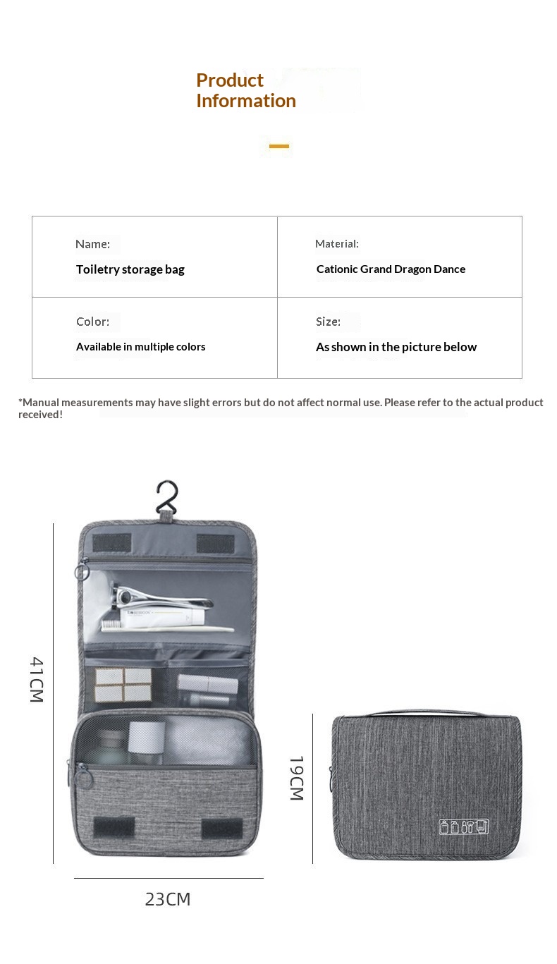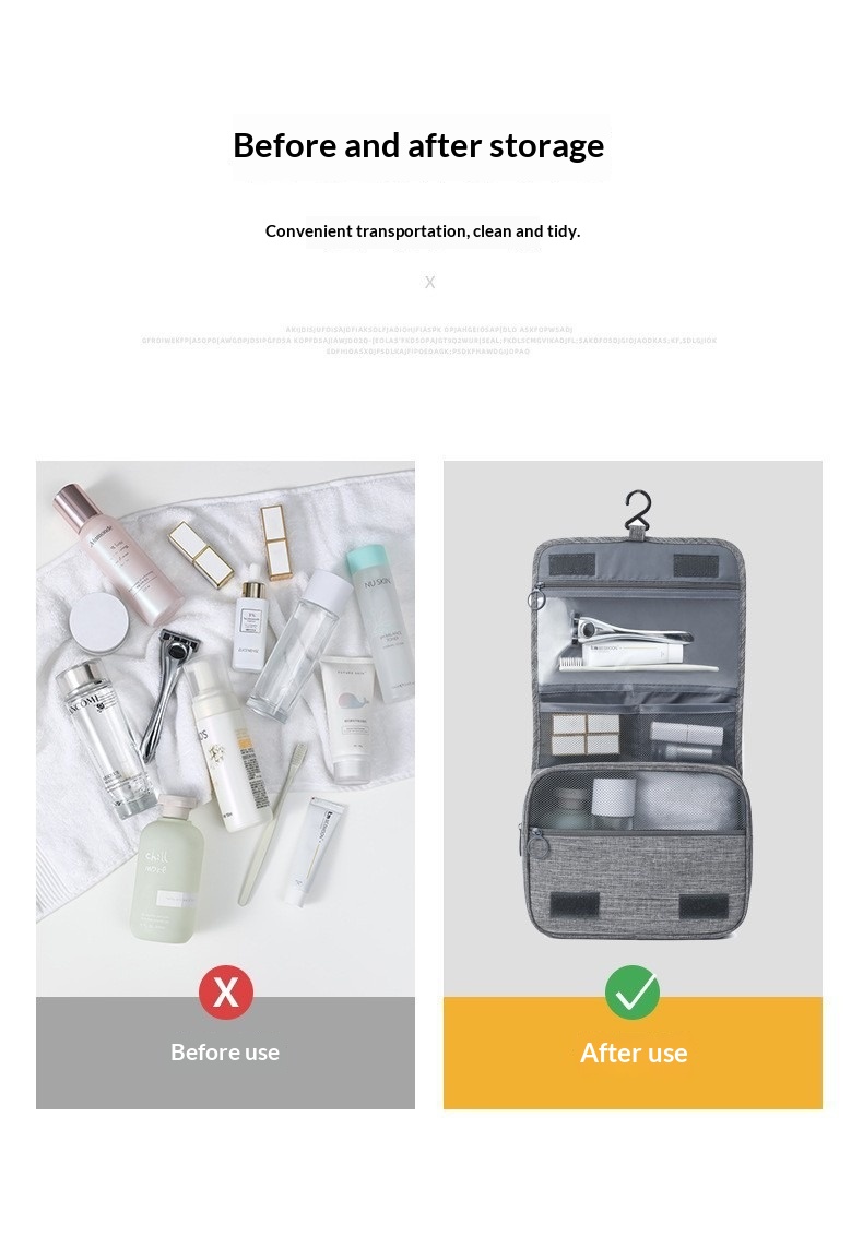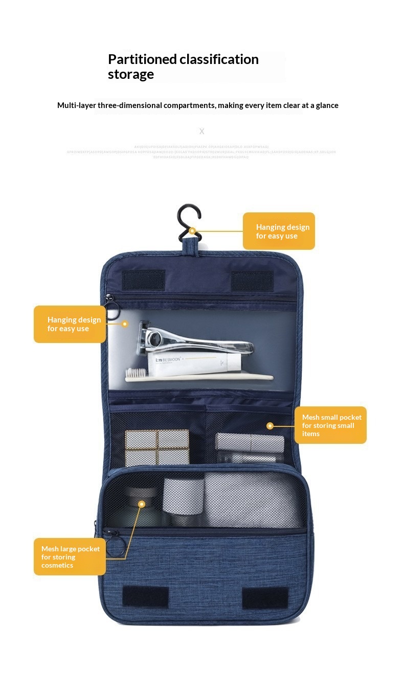 Cationic Hook Toiletry Bag Hanging Matte Dry-wet Separation Travel Makeup Bag
