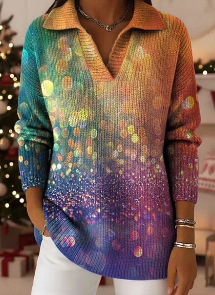 Gradient Flowing Light Buttonless Sequin-filled Dreamy Pattern Polo Shirt