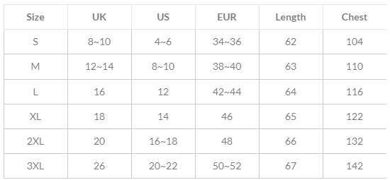 Sizes: S, M, L, XL, 2XL, 3XL, 4XL, 5XL