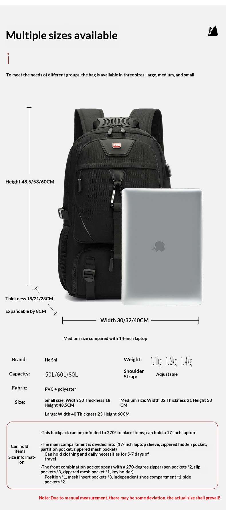 Color: Upgraded Version-50 liters [with shoe warehouse] bare bag, upgraded version-60 liters [with shoe warehouse] bare bag, upgraded version-60 liters [fan color] [with shoe warehouse] bare bag, upgraded version-60 liters [dark blue] [with shoe warehouse] bare bag, upgraded version-60 liters [Army green] [with shoe warehouse] bare bag, upgraded version-80 liters [with shoe warehouse] bare bag