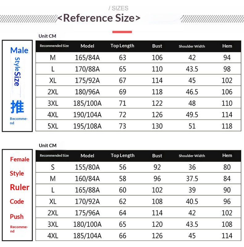 Sizes: S, M, L, XL, 2XL, 3XL, 4XL, 5XL