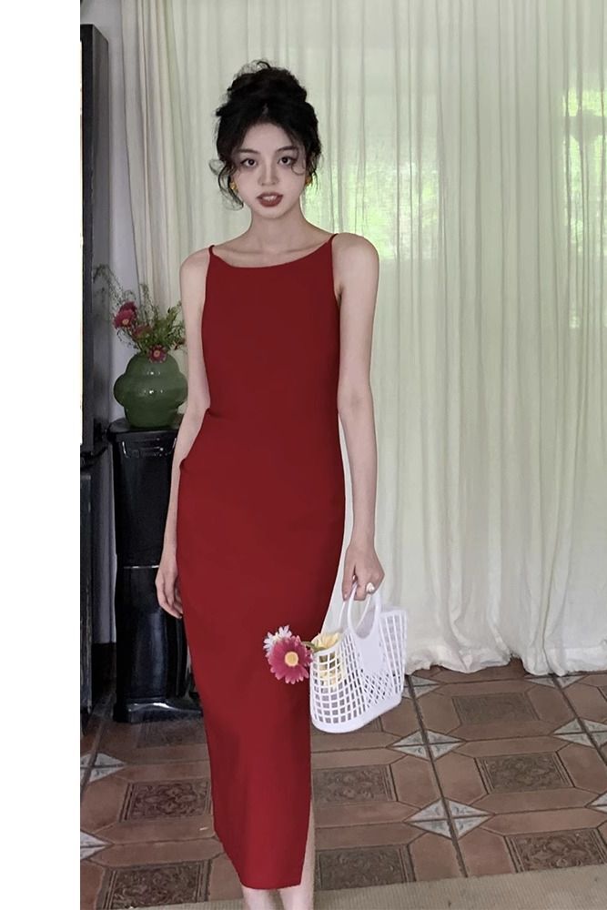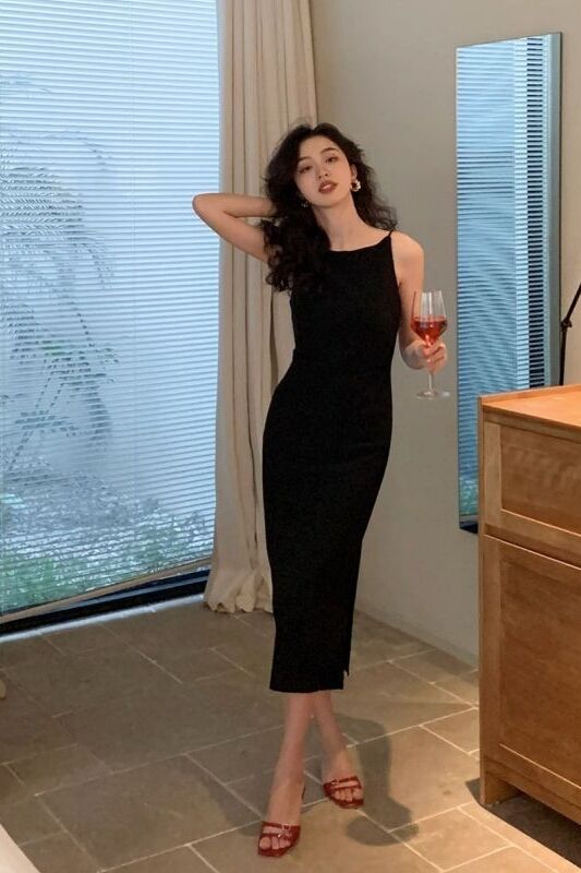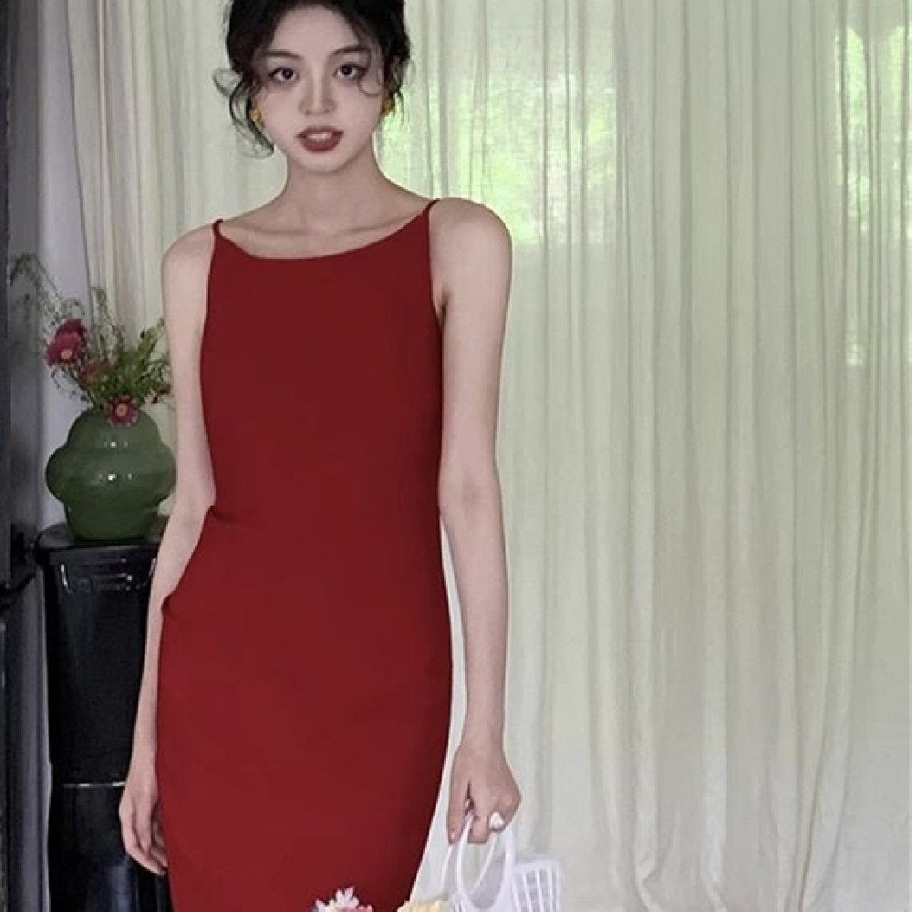 A Lady's French One-shoulder Casual Dress