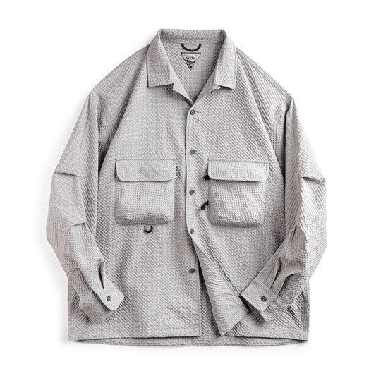 Workwear Outdoor Cuban Collar Seersucker Long Sleeve Shirt