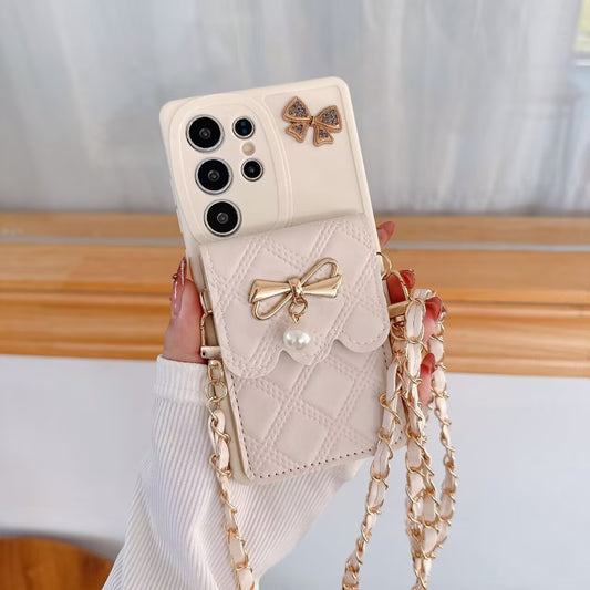Applicable To S25Ultra Phone Case Pearl Butterfly Rhombus Card Holder Phone Case
