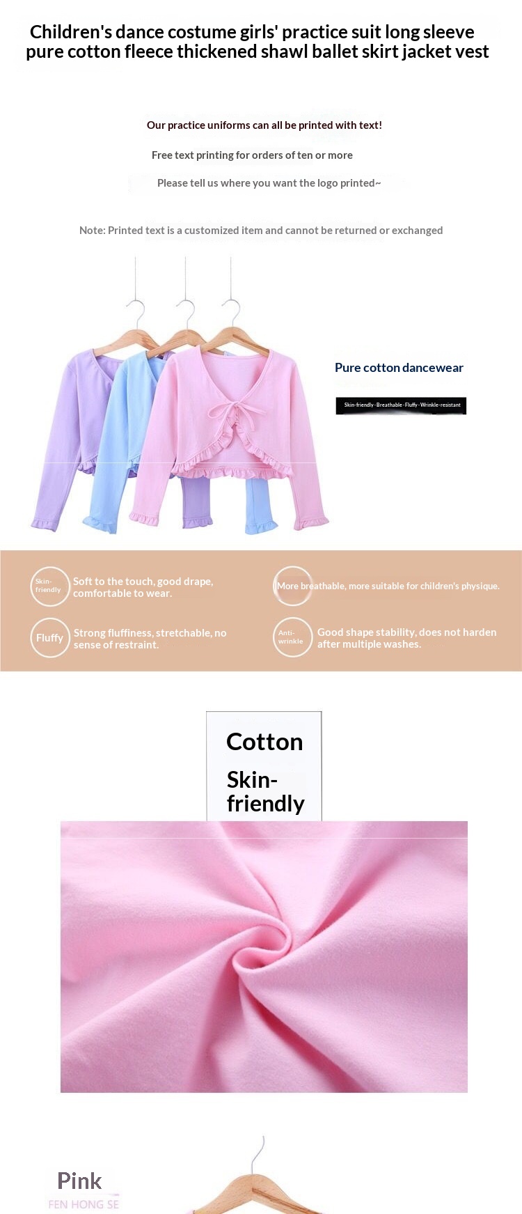 Children's Practice Uniform Dancewear Long-sleeved Cotton Fleece For Girls