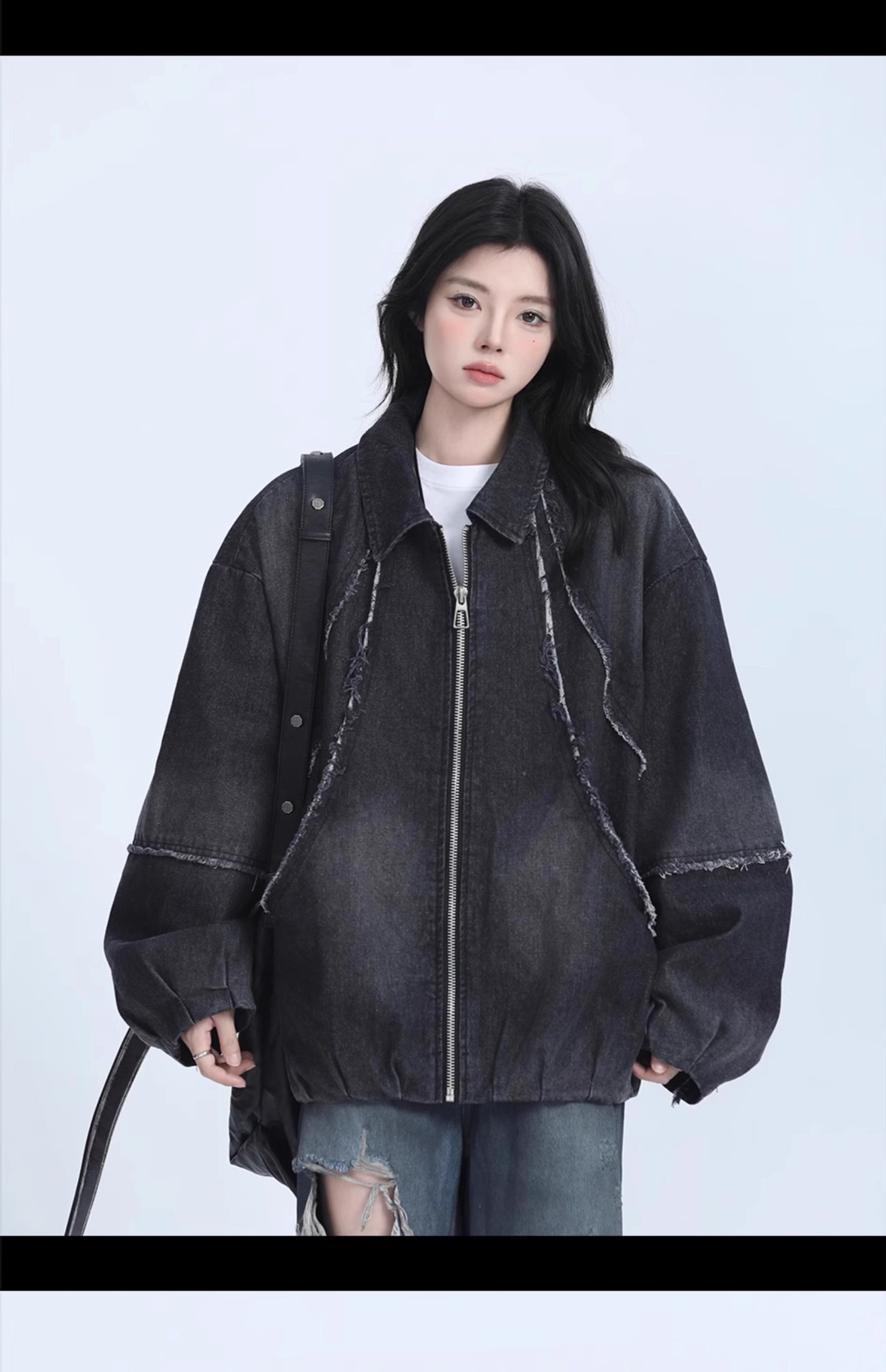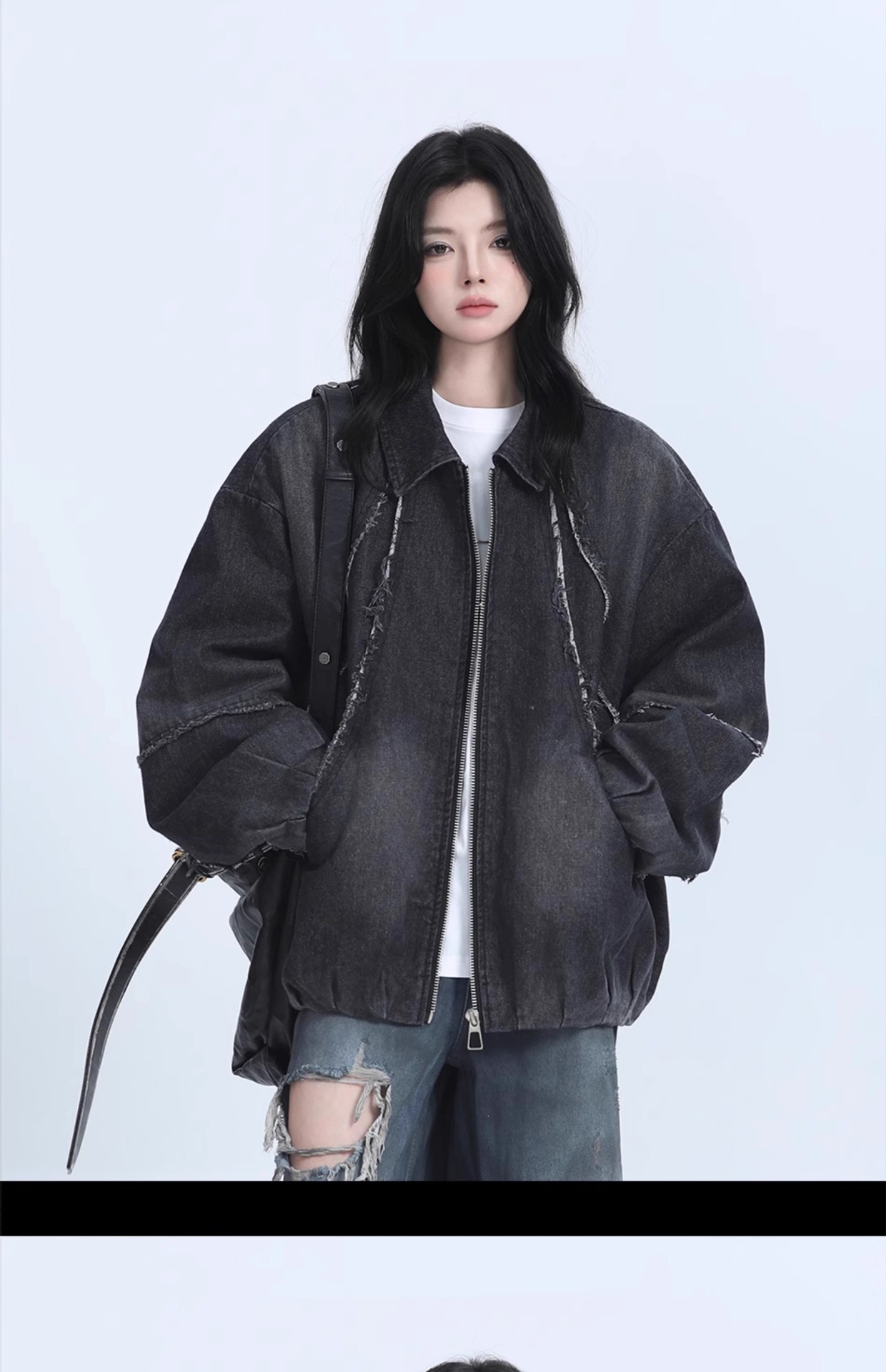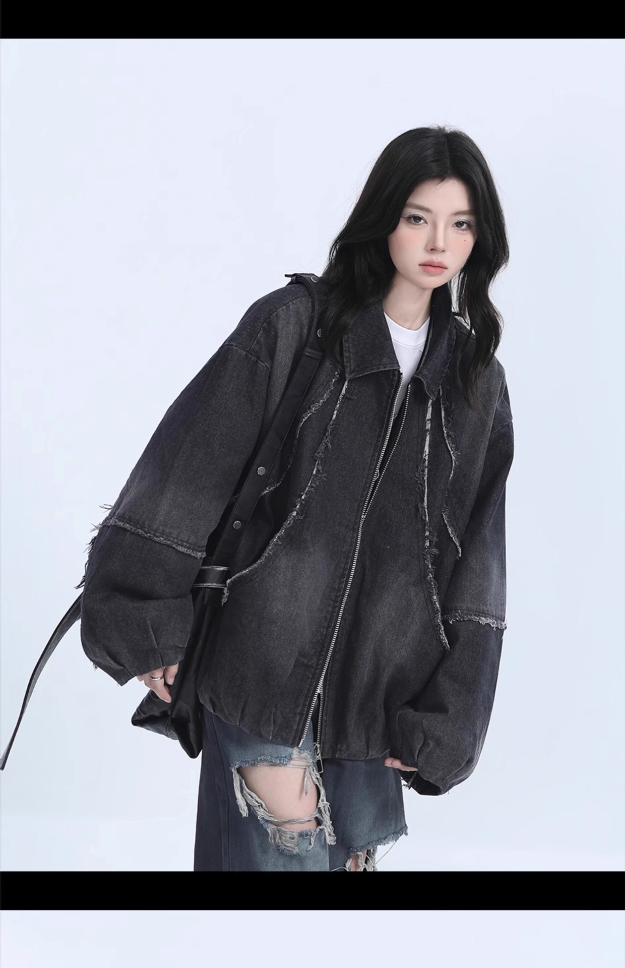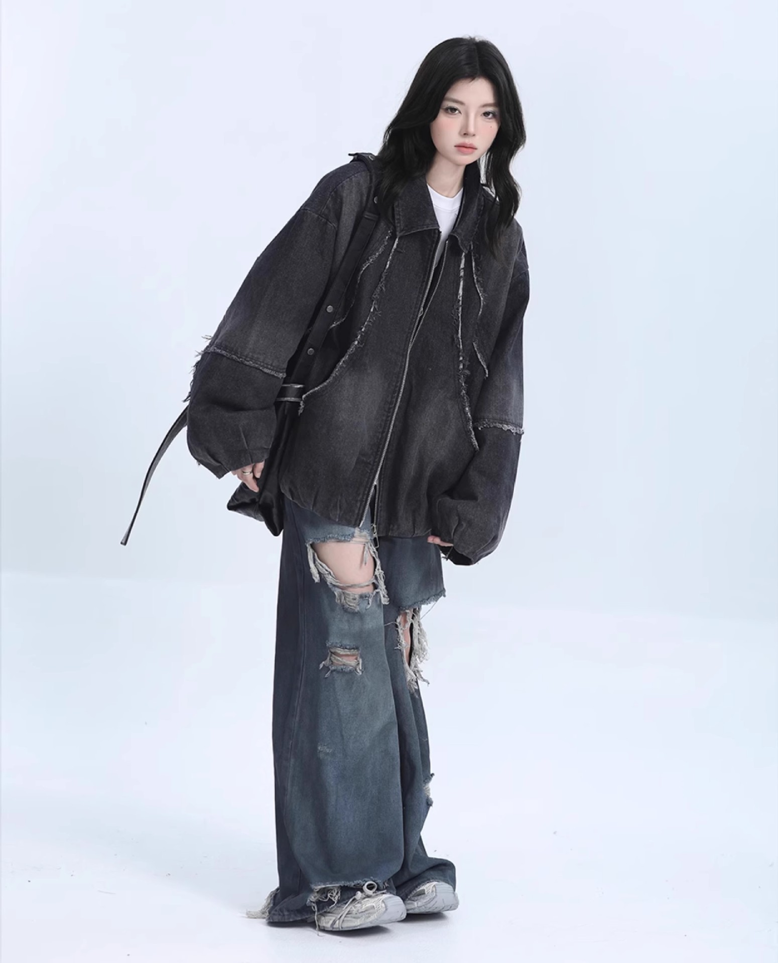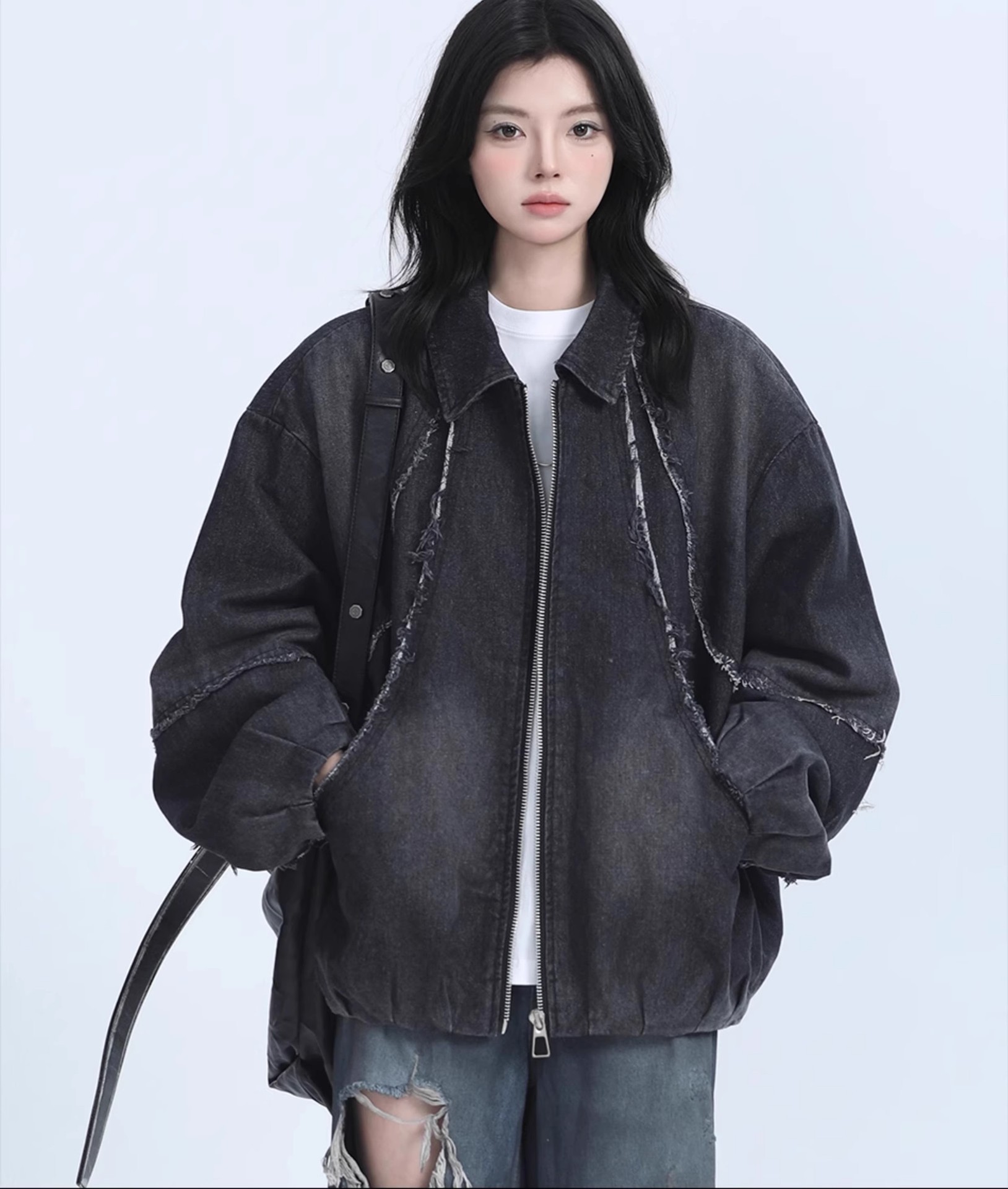 Vintage Industrial Washed Raw Edge Denim Jacket