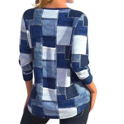 Women's Zipper Long Sleeve Geometric Top