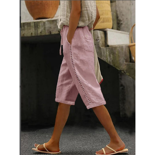 Woven Cotton And Linen Side Lace Hollowed Leisure Shorts