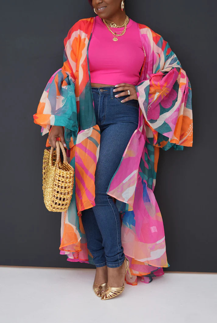 Casual Spring And Autumn Women's Clothing Irregular Long Printed Shawl Cardigan