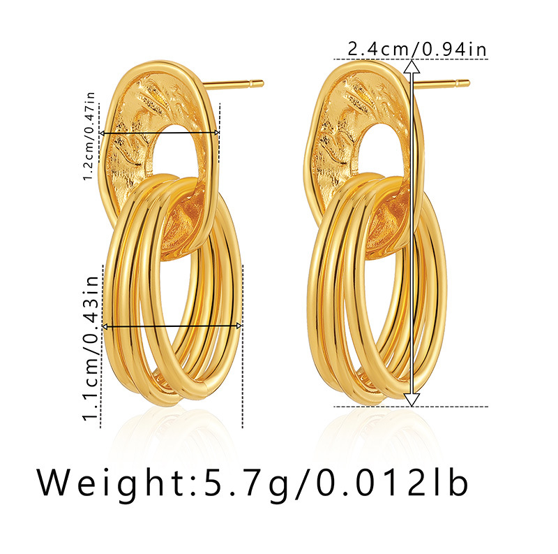Color Retention Copper Plating 18K Real Gold Overlapping Design Double Layers Loving Heart Earrings