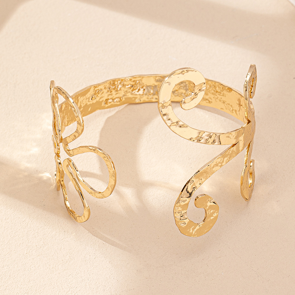 Creative Design Sense Metal Hollow Leaves Flowers Lines Ladies Open-ended Bracelet