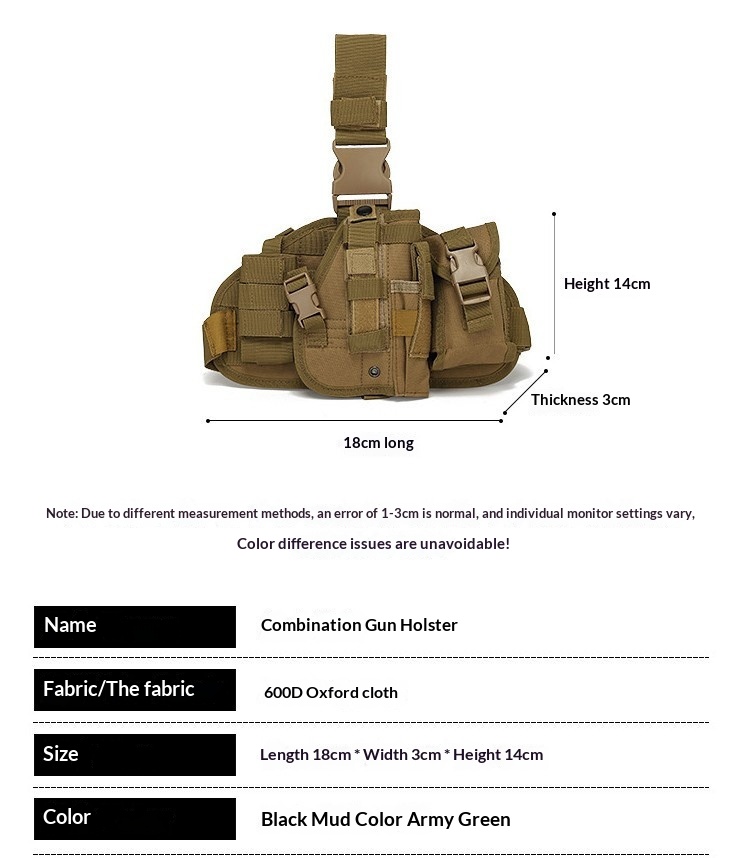 Color: mud color, military green, CP camouflage, FG/ruin green, black
