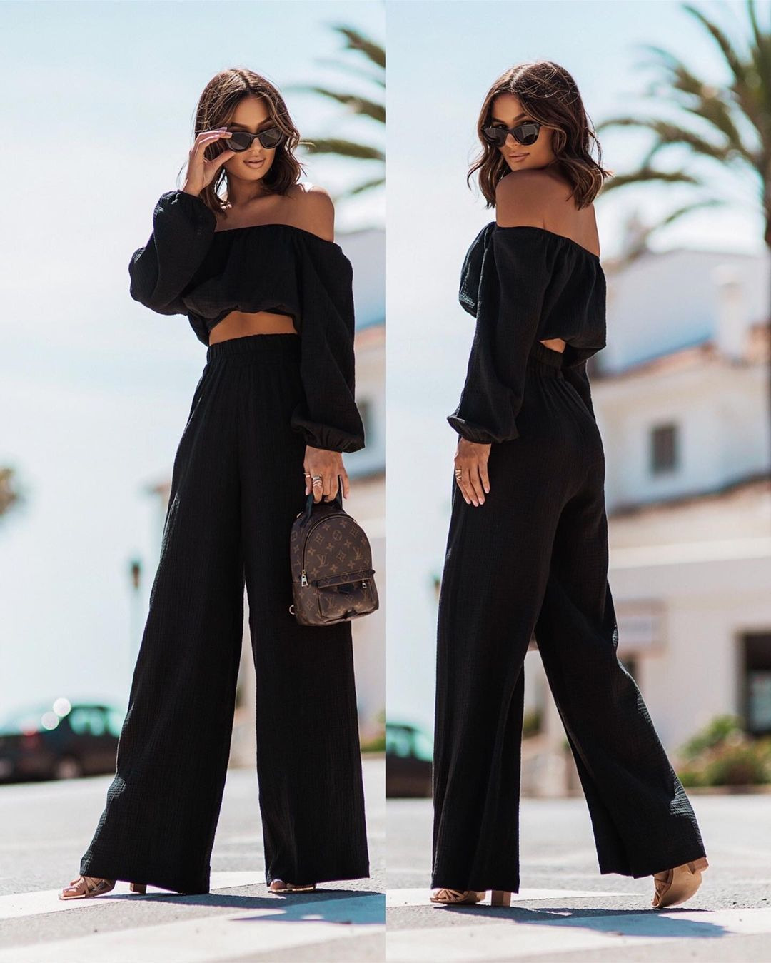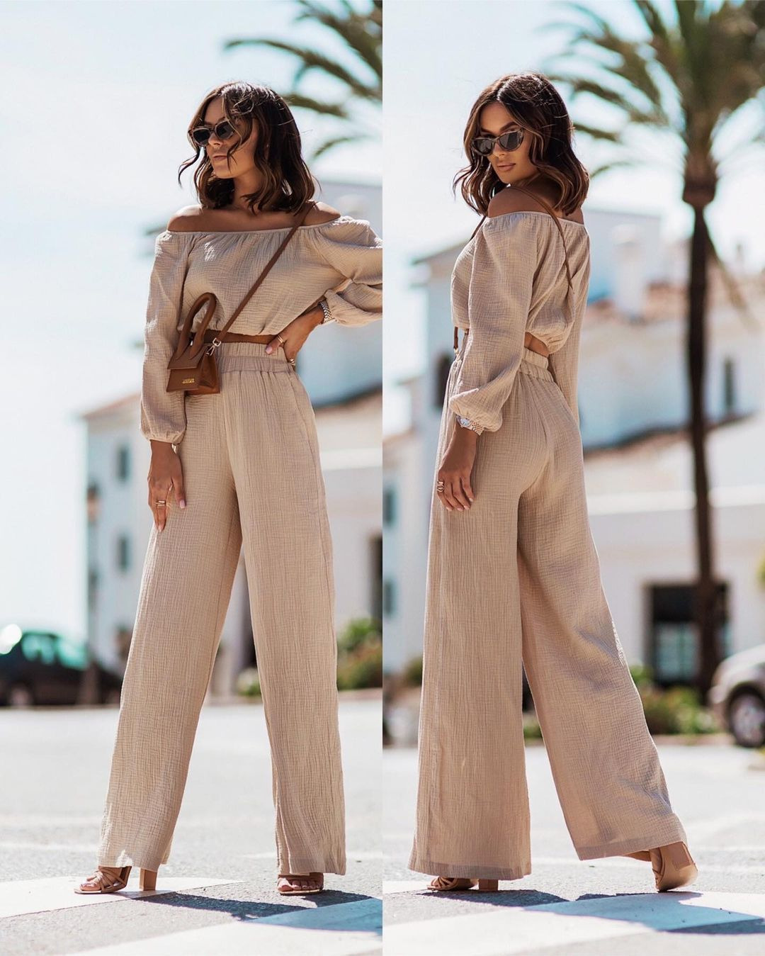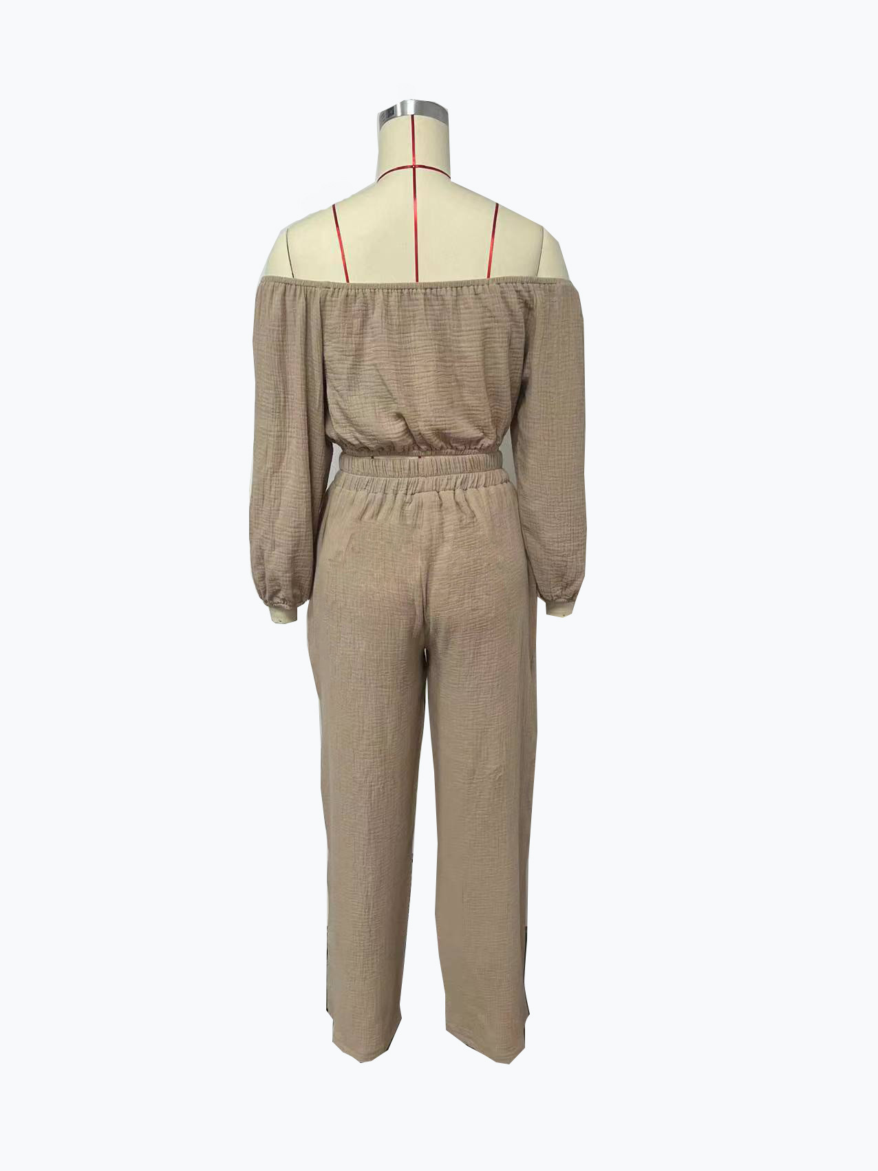 Short-sleeve Off-shoulder Top And Straight-leg Trousers Set