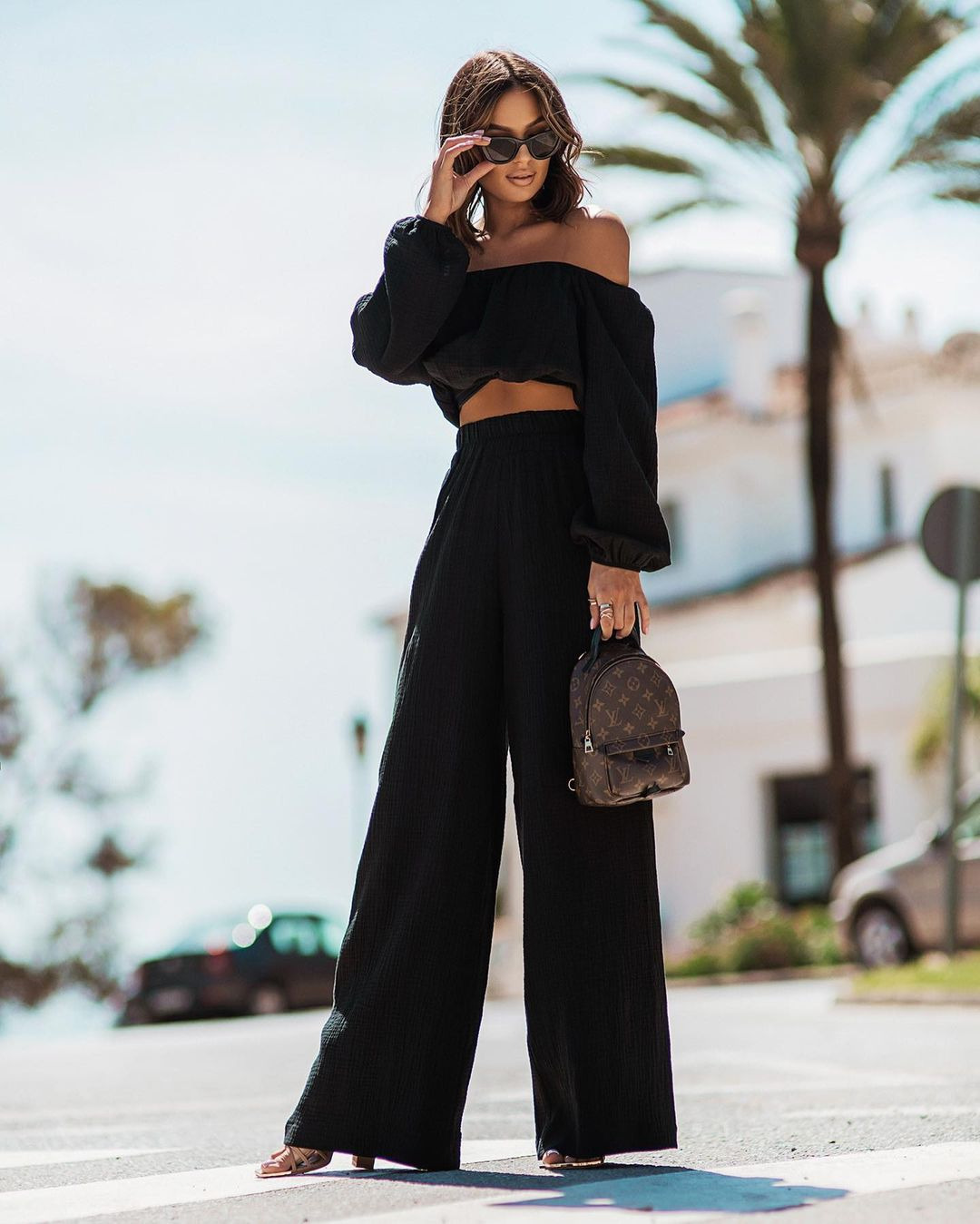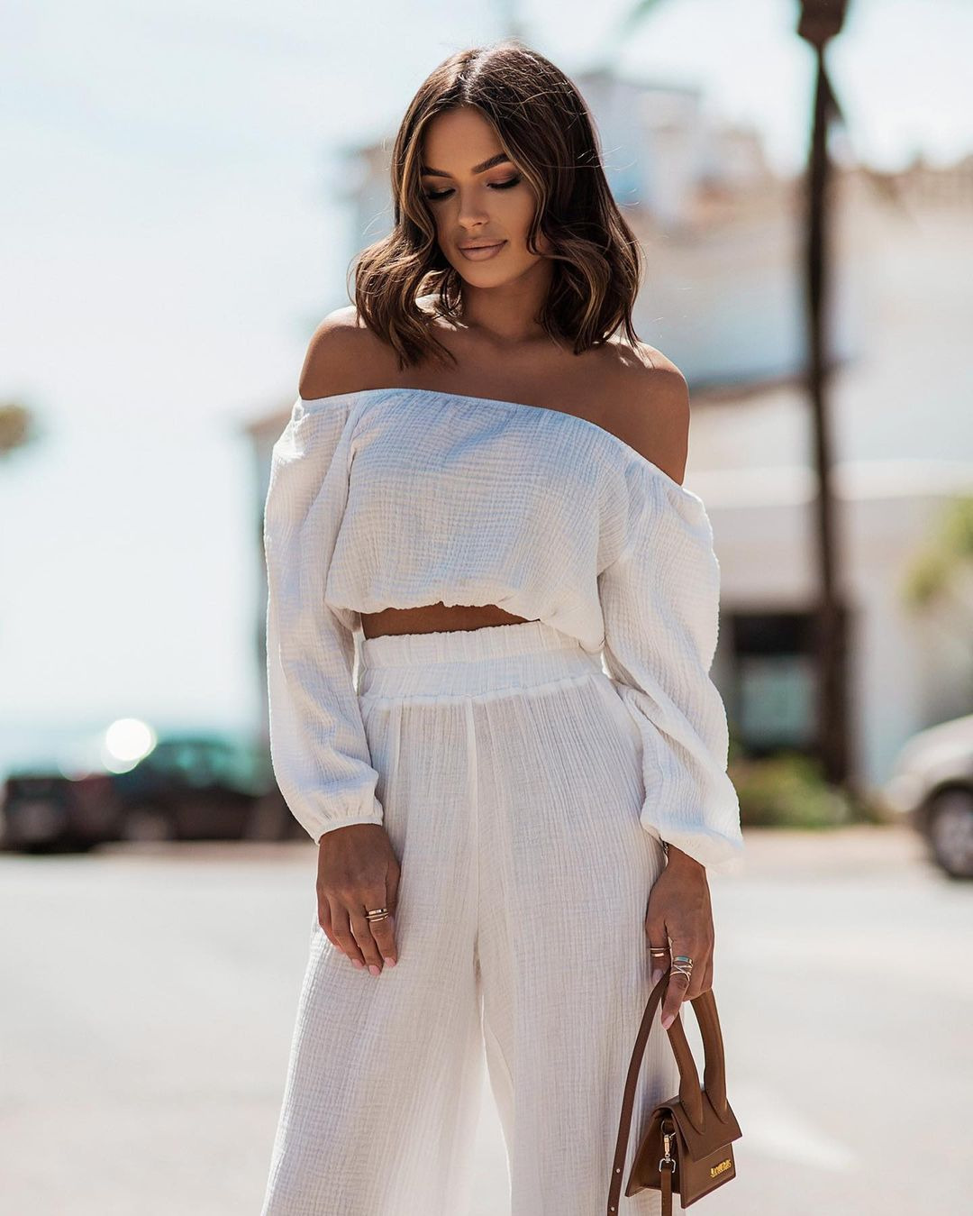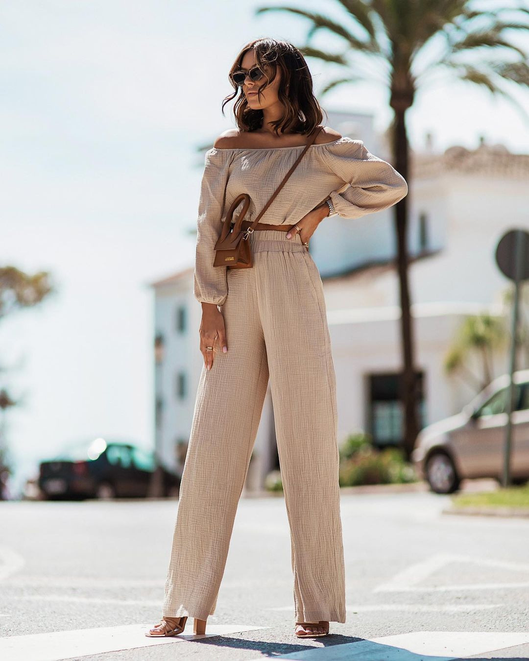 Short-sleeve Off-shoulder Top And Straight-leg Trousers Set