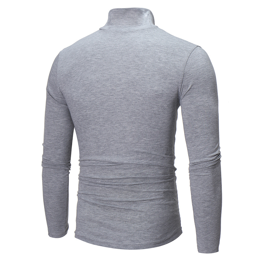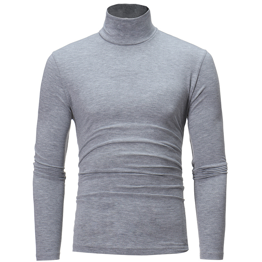 Young Men High Neck Thin Color Slim-fit Fashion Long Sleeves