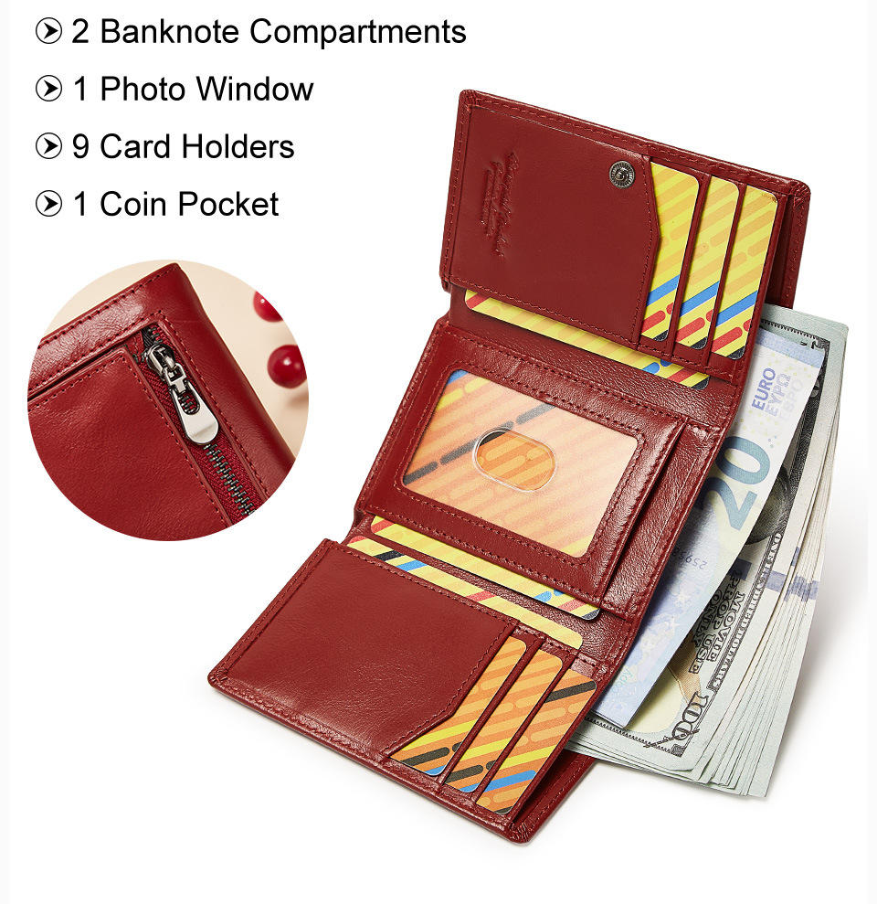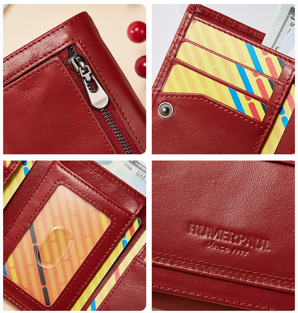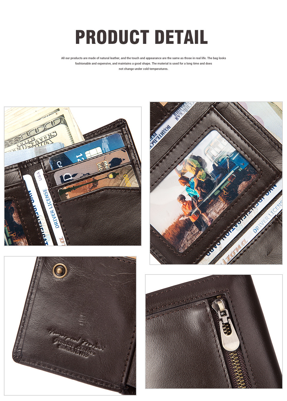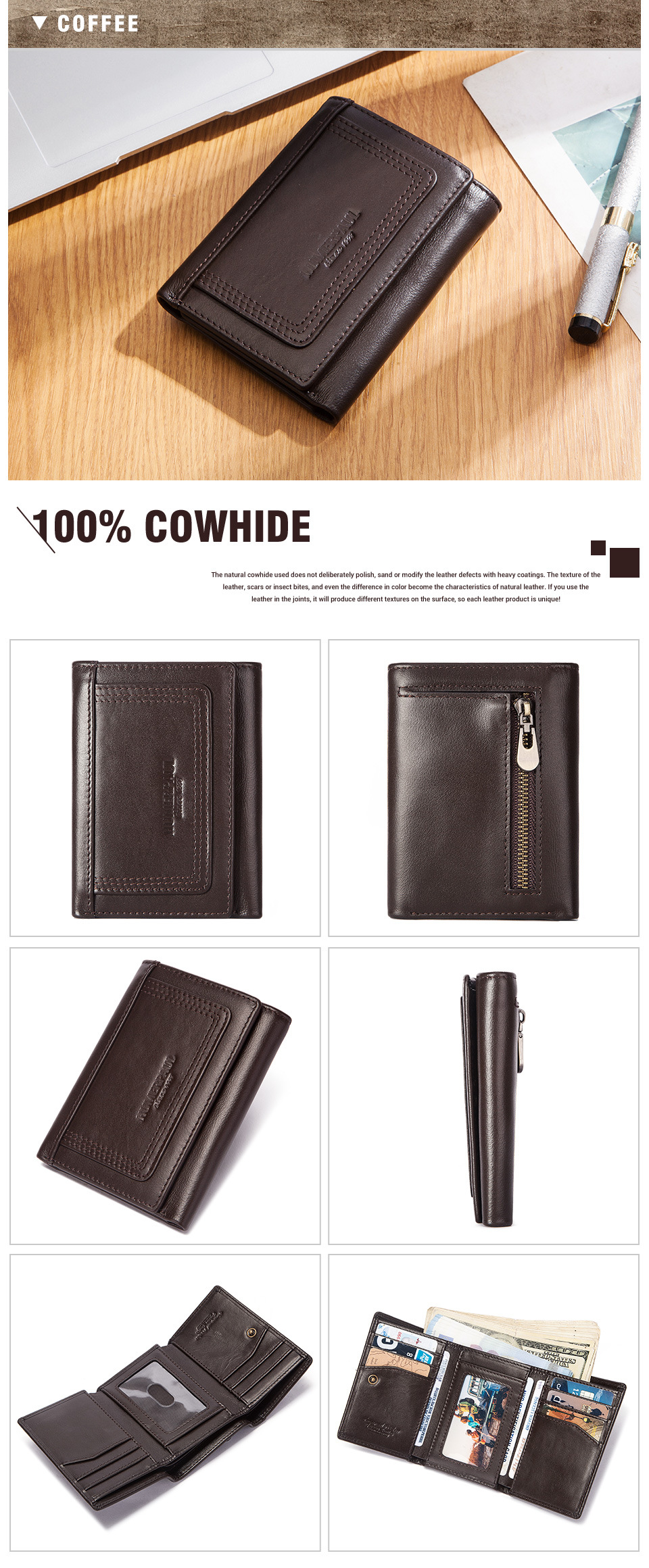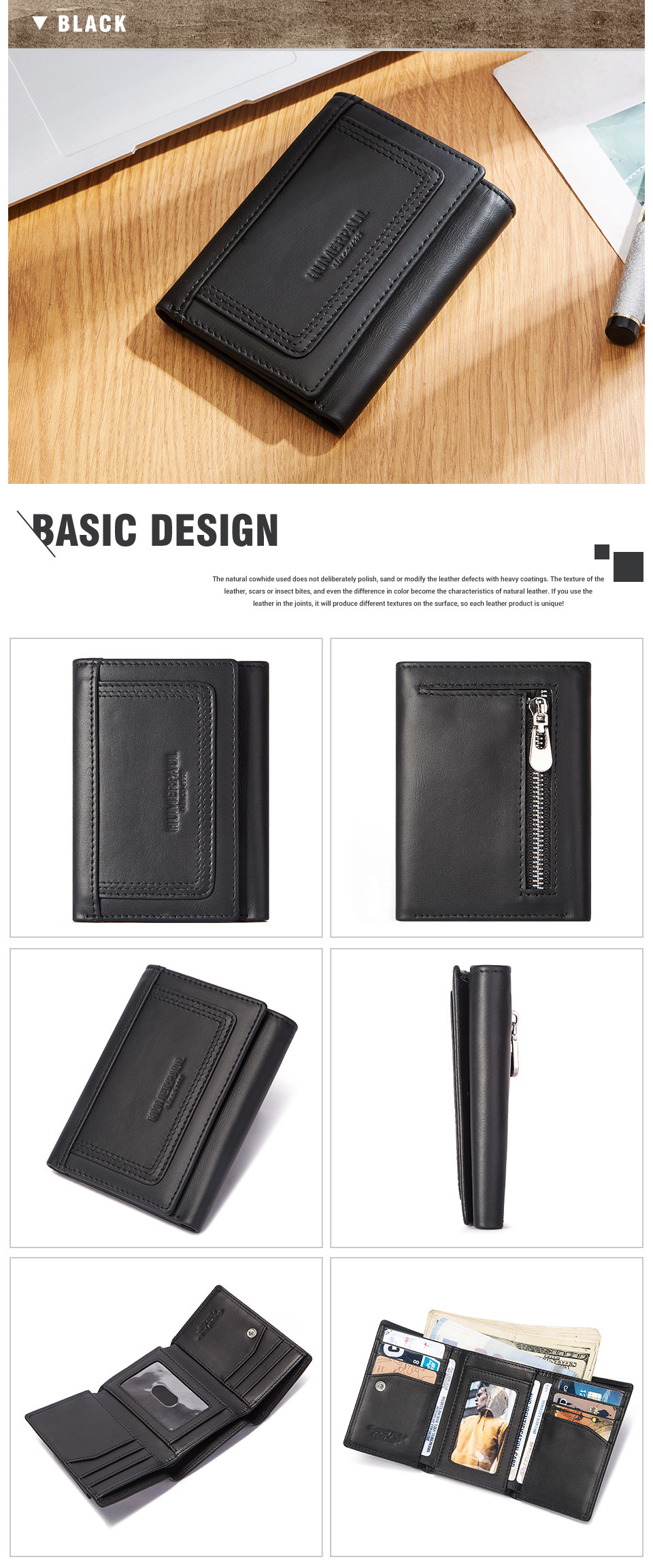 Multi-slot Men's Zipper Bag Genuine Leather Multi-color Coin Purse