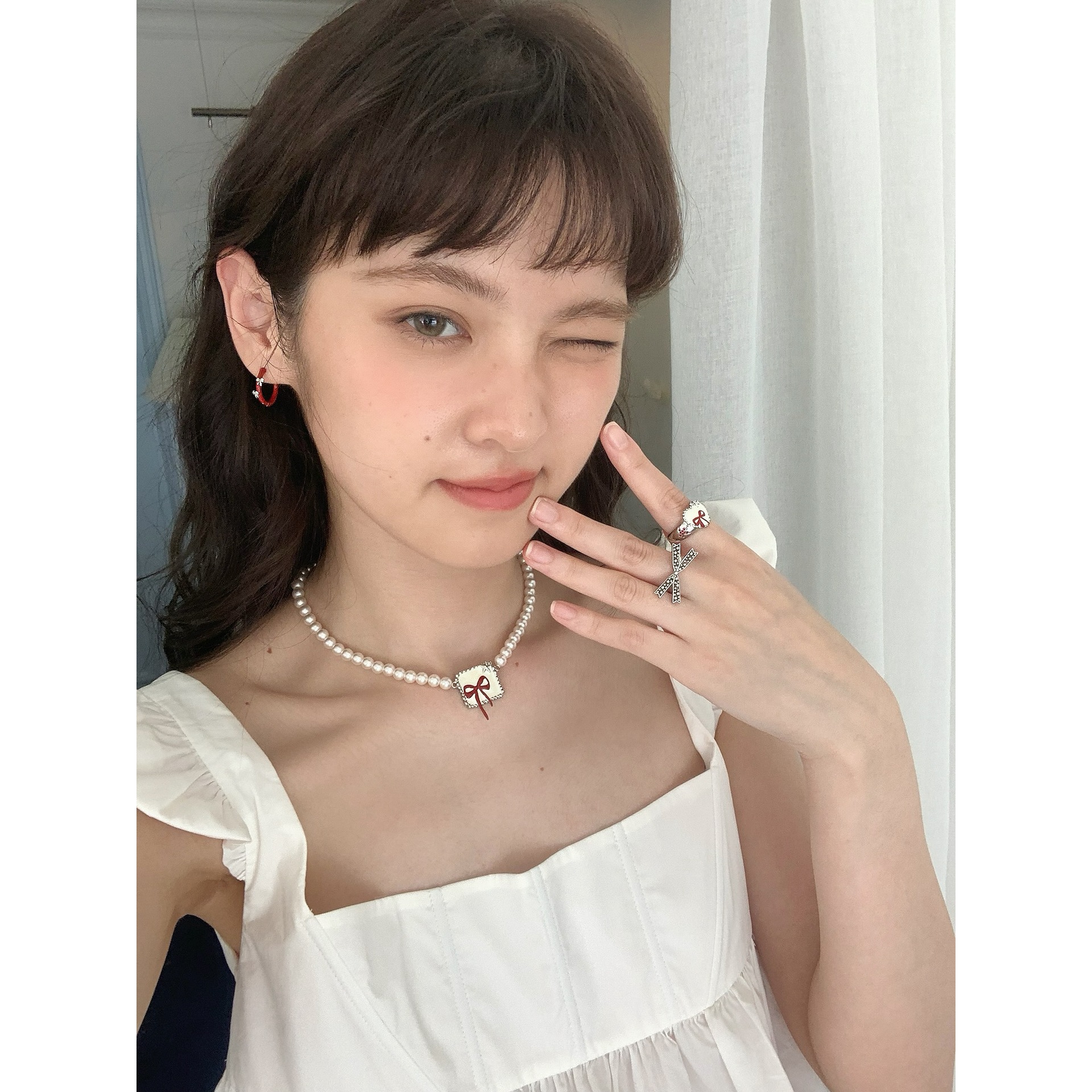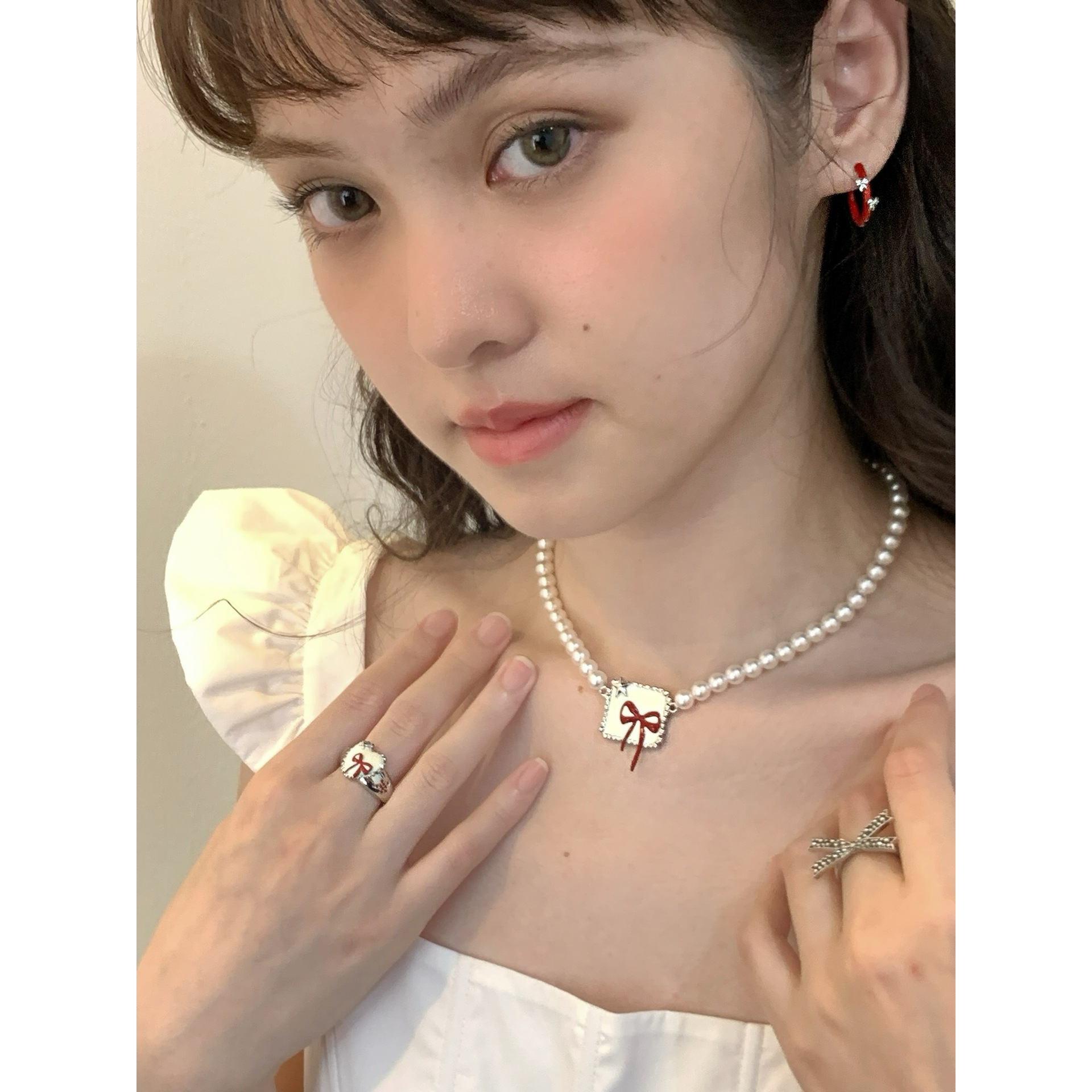 Red-tone French-style Cute Bow Ring With A Girly Vibe