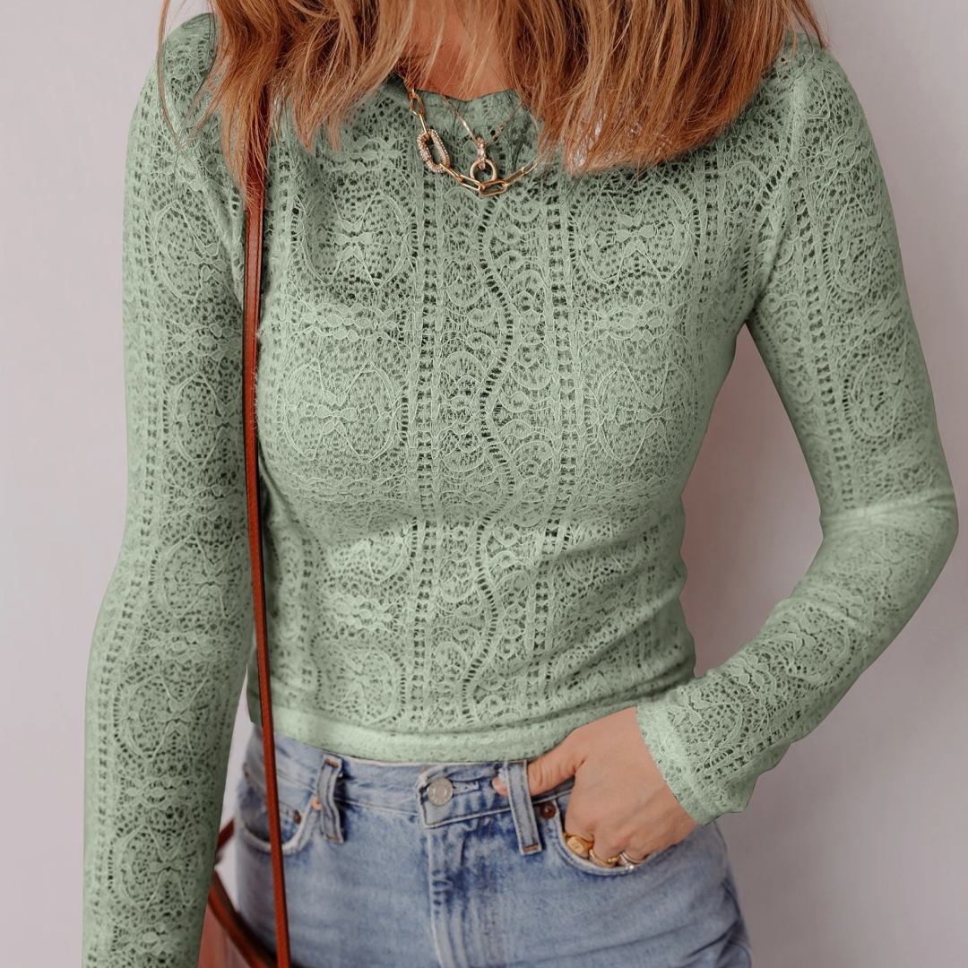 Women's Fashion Casual Long Sleeve Lace Knit Top